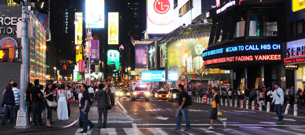 Times Square Lights For some people, the lights of Times Square are the main event, a reason to stay out all night in The City That Never Sleeps. That nickname for Manhattan, by the way, isn’t true. Huffington Post reported last August that the average New Yorker sleeps 6 hours and 47 minutes each night, a few minutes more than the average for Los Angeles and Las Vegas. But never let the truth interfere with a good advertising slogan.