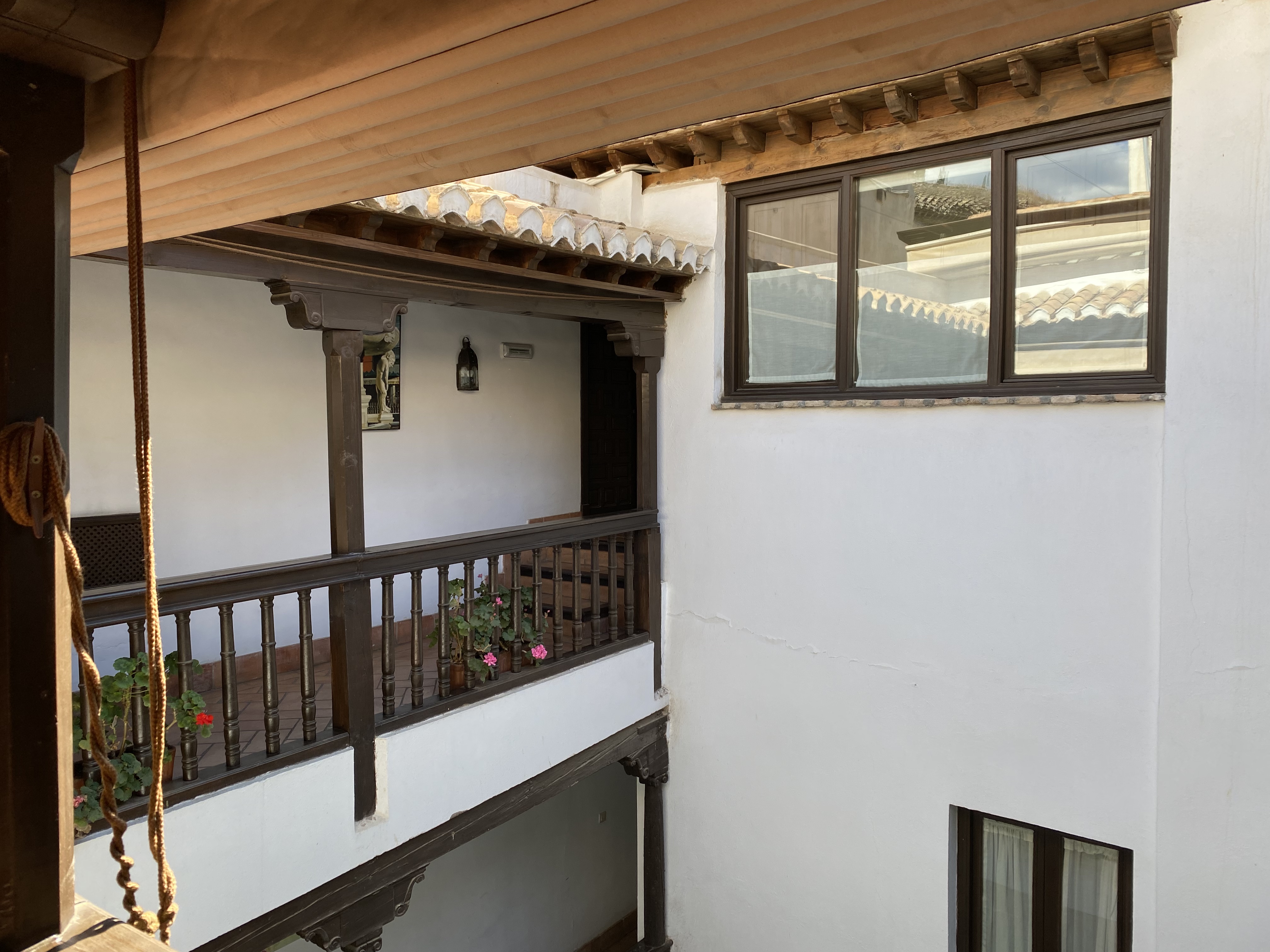 April, 2022, a trip I took with my sister, Bobbi. This is the 16th century Hotel Casa del Capitel Nazari in Granada, Spain. Gracious balcony walkways overlook a central open courtyard, with heavy oaken shutters opening to the view from the rooms. I lay in bed our first night in this hotel while imagining the ghosts of 16th century ladies flitting from the rooms to the atrium railings and looking down to the courtyard below, trying to catch a glimpse of the suitors who come to call. What lives they must have dreamed of.